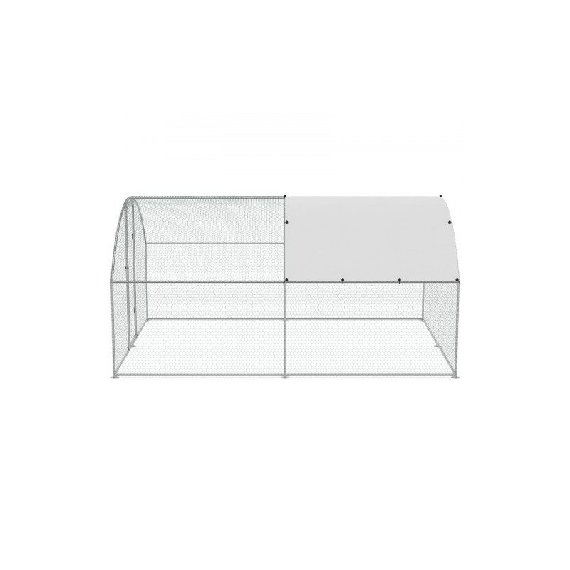 Tämä suuri metallinen kanatarha tarjoaa suojaista ja tilavaa oleskelutilaa kanoille ja muulle siipikarjalle pihalla tai maatilalla. Galvanoiduista teräsputkista valmistettu runko kestää säänvaihteluita ja suojaa ruostumiselta, ja mukana tuleva vedenpitävä PE-katos auttaa pitämään sateen ja liiallisen auringon loitolla.