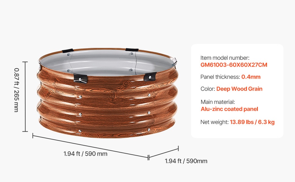 Tämä metallinen korotettu viljelylaatikko tarjoaa runsaasti kasvutilaa kasveille. Syvyys on 1.4 jalkaa, joten se sopii hyvin syväjuurisille kasveille, jotka tarvitsevat tilaa kasvaakseen vahvoiksi ja terveiksi.