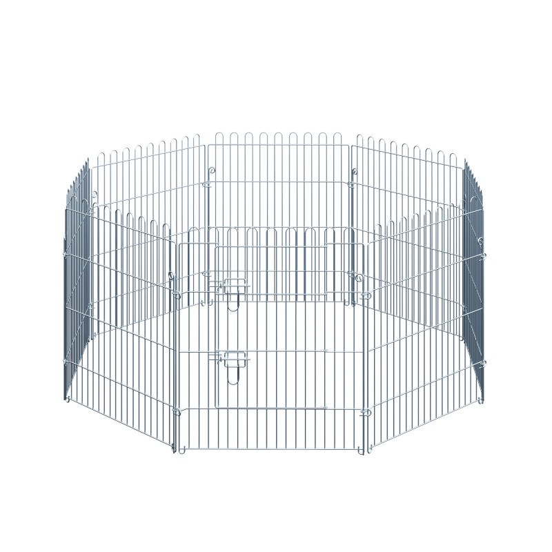 Metallinen pentuaita ulos, 8-osainen koiranpentujen ja pienten eläinten aitaukseen, hopea, elementti 63 x 76 cm
