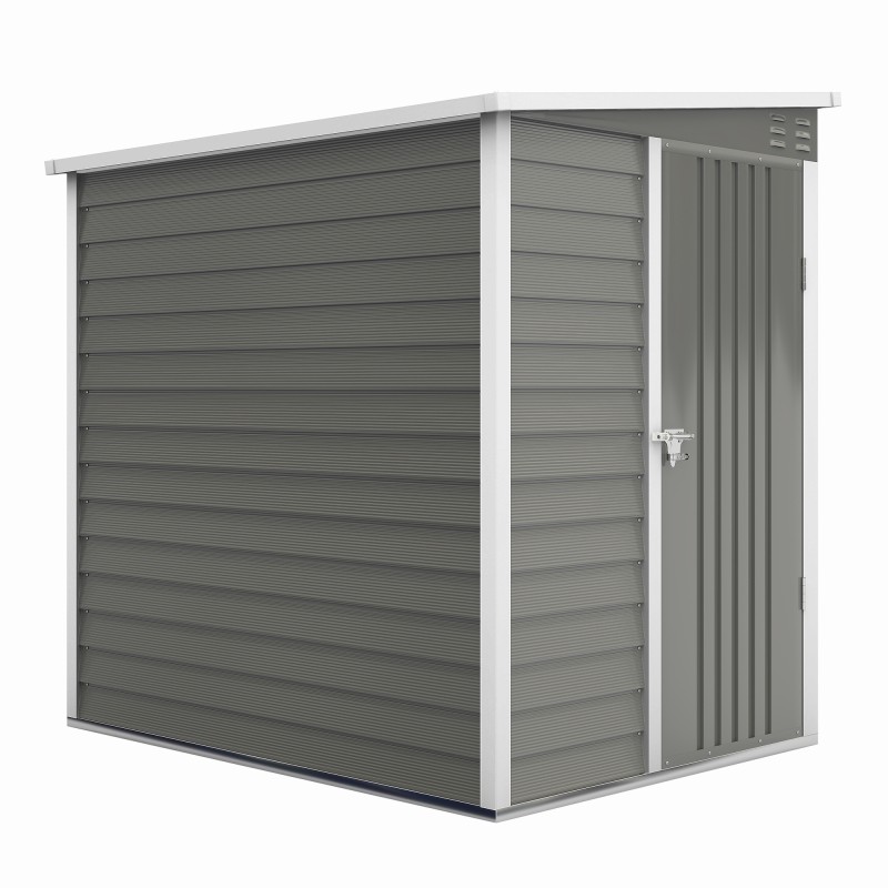 Tämä harmaan sävyinen metallinen pihavarasto tarjoaa kätevän ja suojaisan säilytystilan puutarhavälineille, tarvikkeille ja muille ulkokalusteille. Sinkitystä teräksestä valmistettu rakenne kestää säätä, lukittava ovi turvaa sisältösi ja seinän yläosassa olevat ilmanvaihtoaukot pitävät sisätilan raikkaana ja vähentävät kosteuden kertymistä. Kompakti, talon seinään tai aitaan nojattava malli hyödyntää pihasi tilan tehokkaasti.