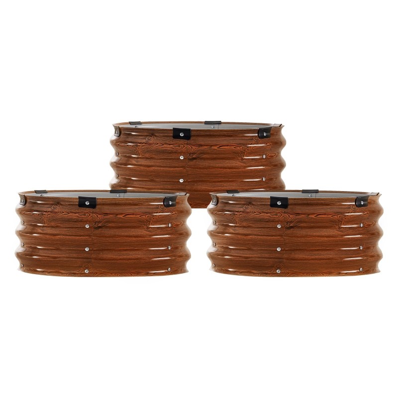 Metallinen pyöreä kohopenkki 3 kpl, aluzinkkipinnoite, avoin pohja, syvä puunsyy, halkaisija 590 mm, korkeus 265 mm
