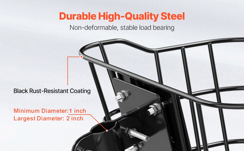 Raskasta käyttöä kestävä metallirakenne ehkäisee muodonmuutoksia ja pidentää korin käyttöikää. Sileä, ruosteenkestävä pinnoite tekee ajamisesta miellyttävämpää myös kostealla ja sateisella säällä.