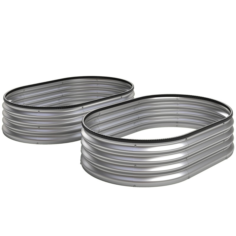 Metallinen viljelylaatikko 2 kpl, sinkitty teräs, ovaali, 135 x 90 x 30 cm, hopea