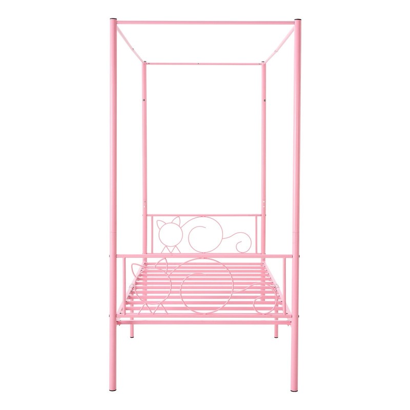 Metallinen yhden hengen katossängyn runko neljän pylvään vaaleanpunainen