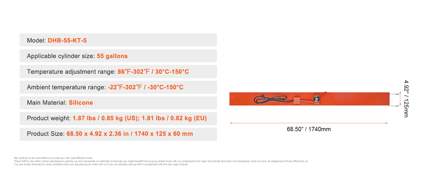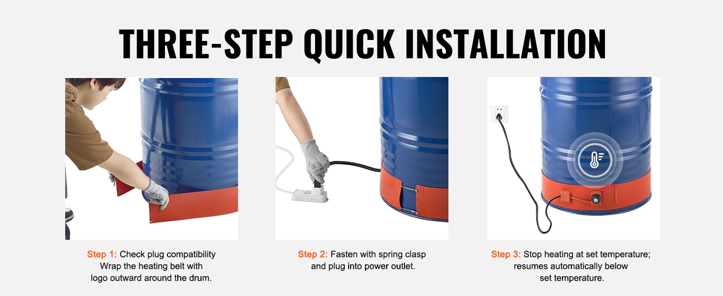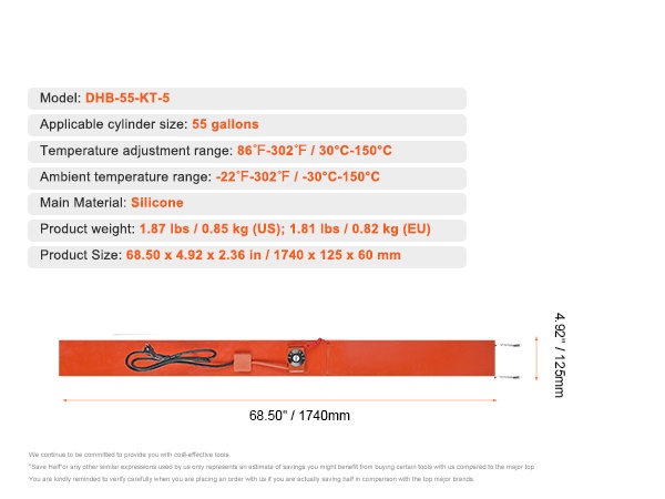 Sopii erityisesti nesteiden, voiteiden ja muiden lämpöherkkien materiaalien lämmittämiseen 5 gallonin metallitynnyreissä. Kätevä valinta esimerkiksi ulkokäyttöön talvella, työpajoihin, varastoihin ja muihin matalalämpötilaisiin ympäristöihin.