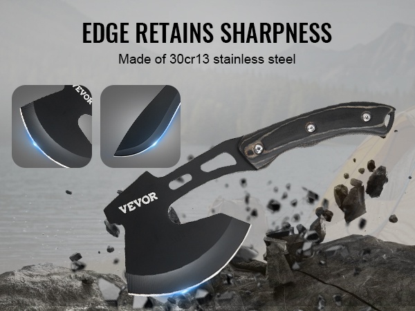 Sekä veitsen että kirveen terät on valmistettu 30Cr13-ruostumattomasta teräksestä. Materiaali tarjoaa korkean kovuuden ja hyvän teränpitävyyden, jolloin leikkauskyky säilyy ja terät kestävät muodonmuutoksia paremmin vaativassakin käytössä.