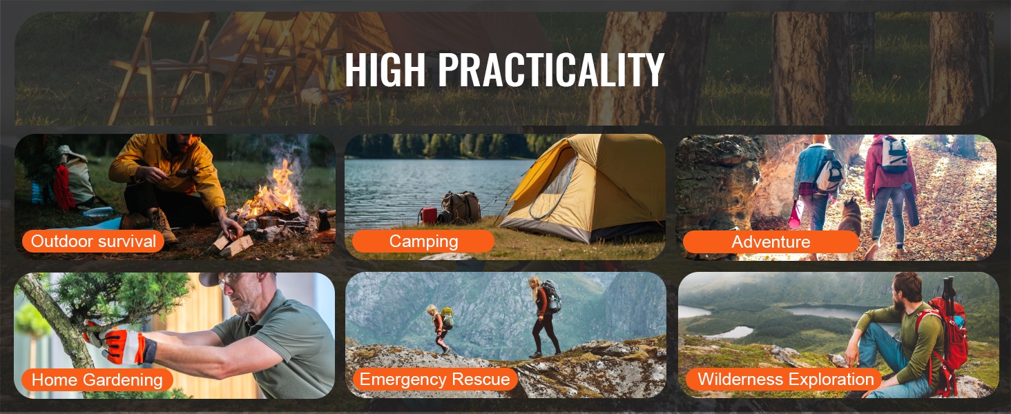 Setti soveltuu hyvin retkeilyyn, vaelluksille, offroad-ajoreissuille, metsästykseen, eräseikkailuihin sekä kodin ja puutarhan puutöihin. Kompakti kokonaisuus kulkee helposti mukana esimerkiksi repussa tai varustelaukussa.