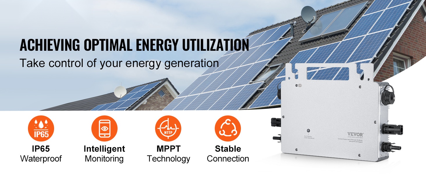 Tämä 800W aurinkosähköverkkoon liitettävä mikroinvertteri muuntaa aurinkopaneelien tuottaman tasavirran luotettavasti käyttövalmiiksi vaihtovirraksi. IP65-suojattu alumiinikuori kestää ulkokäyttöä, ja käyttöjännitealue DC18V–50V sopii 2 aurinkopaneeliryhmälle. Älypuhelinsovelluksen ja WiFi-antennin avulla voit valvoa järjestelmää etänä ja seurata tuotantoa reaaliajassa.