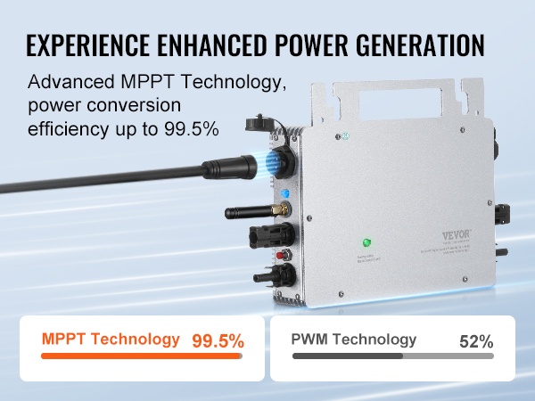 Mikroinvertteri hyödyntää MPPT-teknologiaa (Maximum Power Point Tracking) ja hakee jatkuvasti aurinkopaneelien suurimman tehon pisteen. Näin se tehostaa energiantuottoa ja parantaa sähköntuotannon hyötysuhdetta, mikä auttaa pienentämään sähkölaskua.