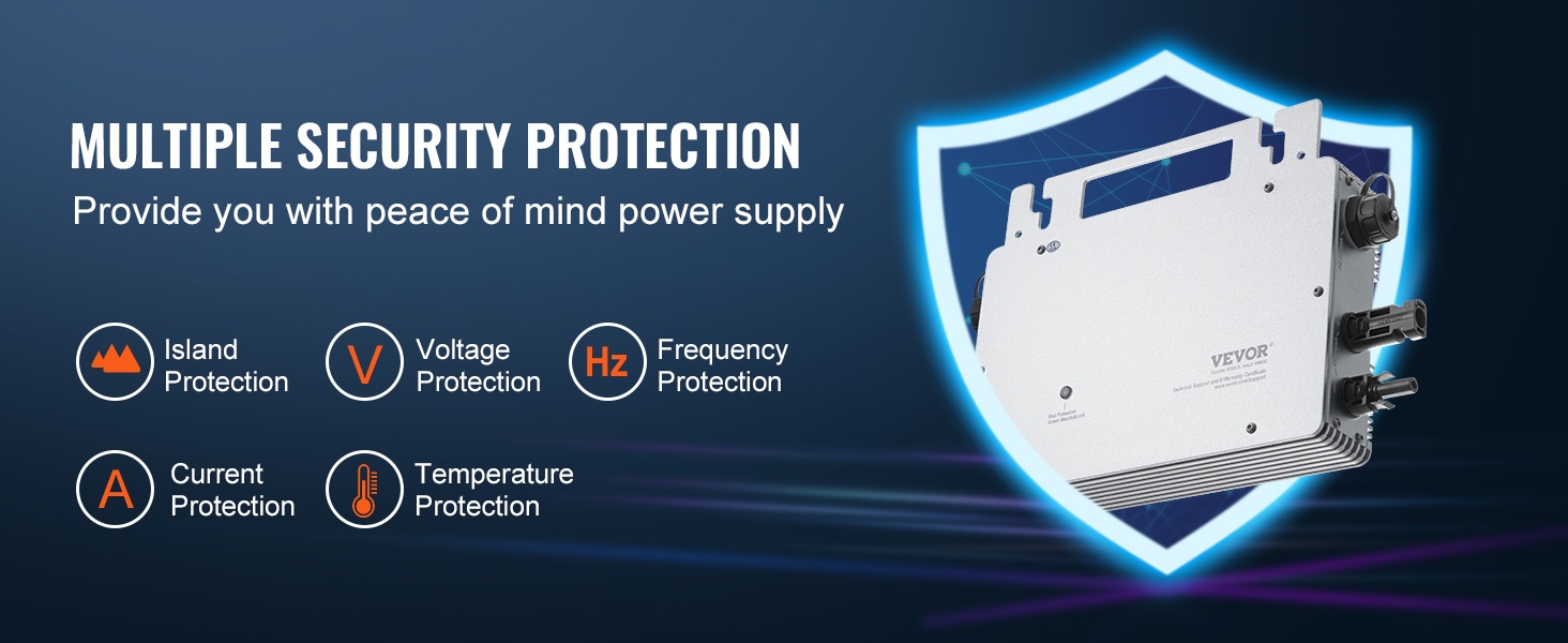 Invertteri sisältää saarekesuojan sekä jännite-, taajuus-, lämpötila- ja virtasuojauksen. Näiden ansiosta se soveltuu käyttöön erilaisissa kohteissa, kuten omakotitaloissa, liikekiinteistöissä ja maatalouden järjestelmissä, tarjoten vakaan ja luotettavan sähkönsyötön.