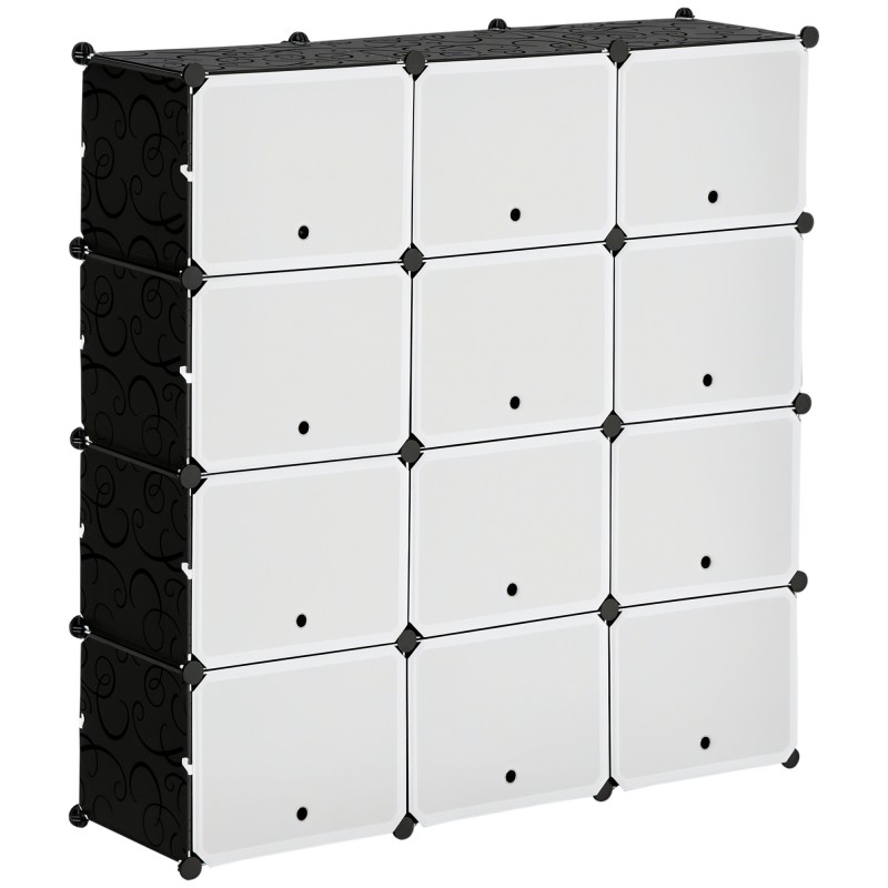 Tämän muunneltavan kuutiohyllyn avulla pidät kodin tavarat siistissä järjestyksessä juuri omien tarpeidesi mukaan. 12 erillistä säilytyskuutiota voidaan liittää yhteen kompaktiksi kaapiksi tai käyttää erillään eri huoneissa. Se sopii yhtä hyvin kengille, leikkikaille, pyykeille kuin muulle pientavaralle esimerkiksi eteiseen, lastenhuoneeseen, olohuoneeseen tai varastoon.
