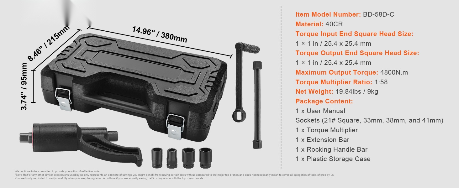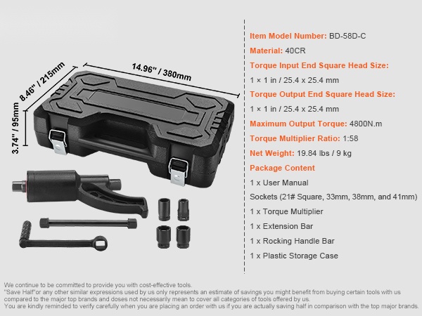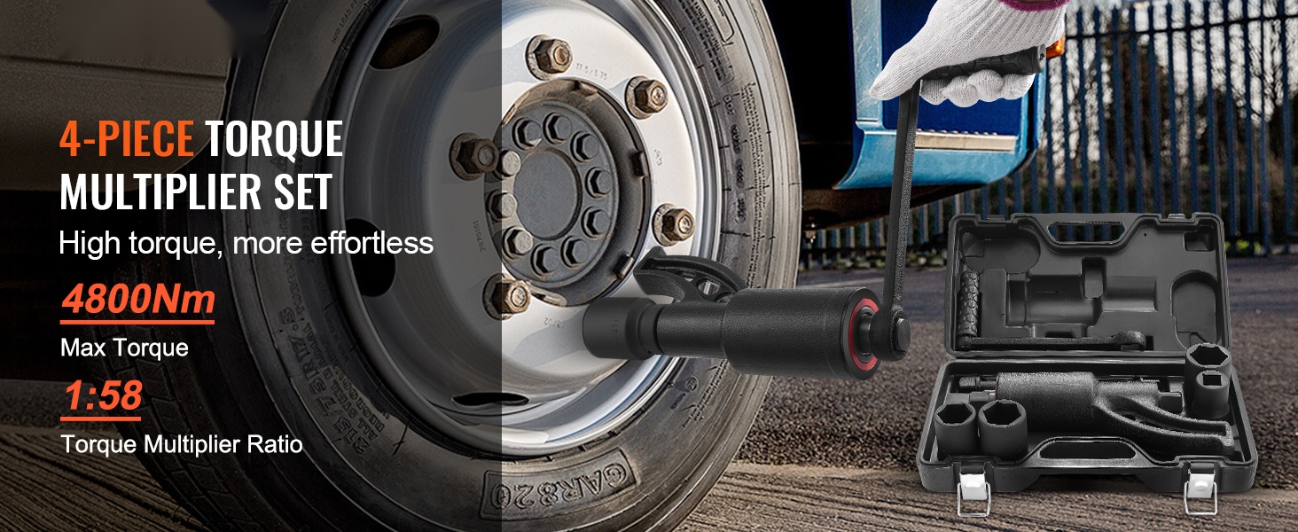 Tämä raskaan käytön momentinkerroinavain helpottaa tiukkojen ja ruostuneiden pyöränmutterien irrotusta ja kiristystä raskaissa ajoneuvoissa. 1:58-välityssuhteen ansiosta saat jopa 4800N.m ulostulomomentin pienelläkin käsivoimalla.