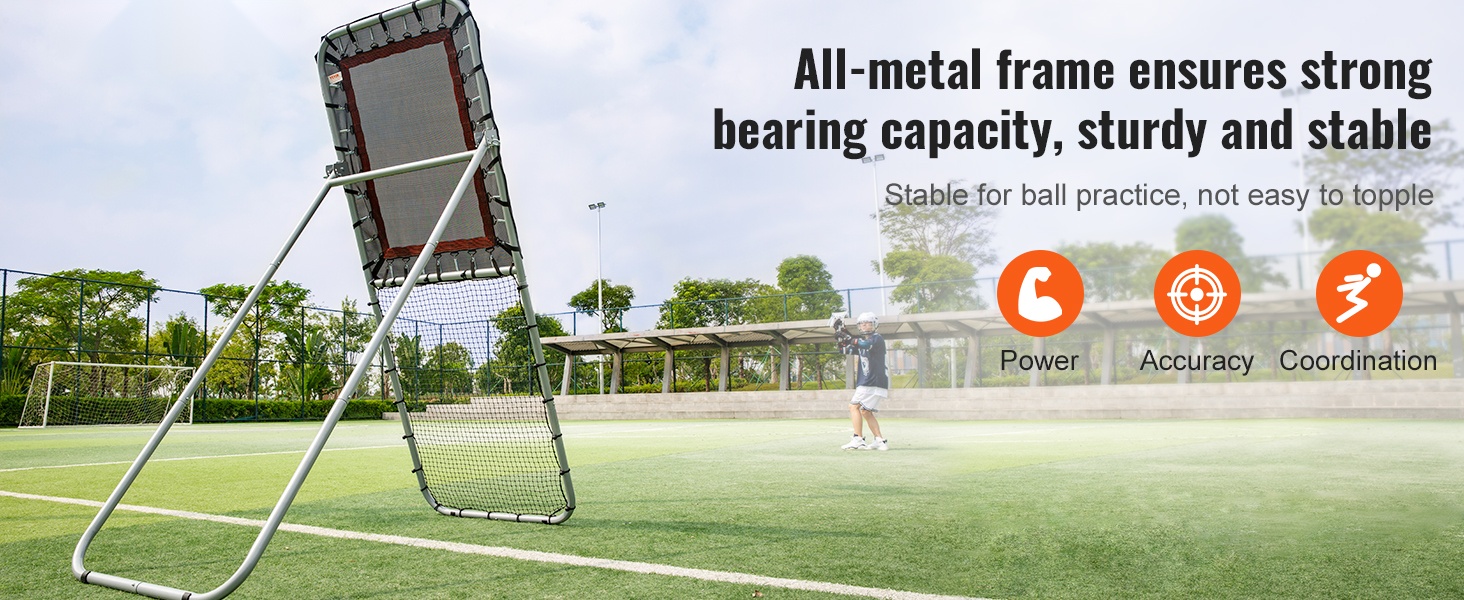 Paksunnettu rautaputkesta valmistettu runko antaa palautusverkolle hyvän tuen. Rakenne on suunniteltu kestämään toistuvat ja kovat laukaukset ilman, että verkko kaatuu harjoittelun aikana.