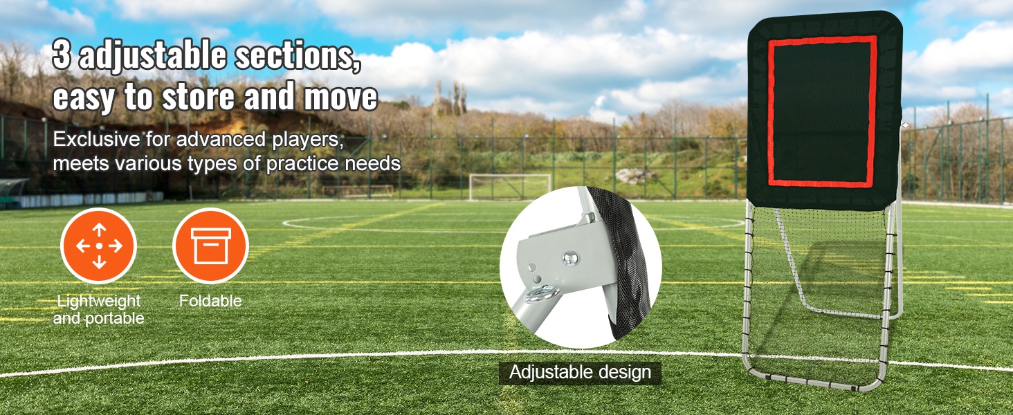 Kolmiportainen kulmansäätö mahdollistaa pomppukulman muokkaamisen harjoitustarpeen mukaan. Kompakti rakenne on helppo koota muutamassa minuutissa ja sopii käytettäväksi sekä takapihalla että leikkikentällä tai harjoituskentällä.