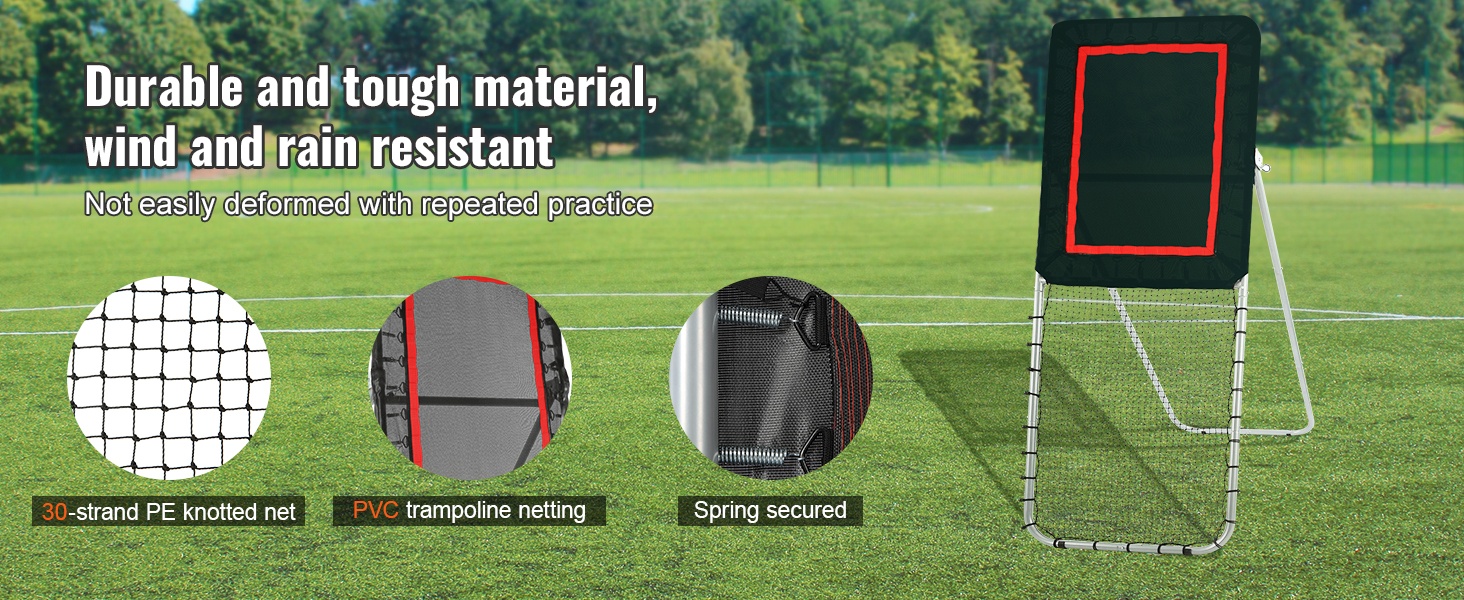 Palautusverkko on valmistettu PVC-pomppukankaasta ja kiinnitetty teollisuusluokan jousilla, mikä takaa vahvan ja tasaisen palautuksen. Tuulen- ja vedenkestävä materiaali pidentää käyttöikää ja soveltuu hyvin ulkoharjoitteluun.