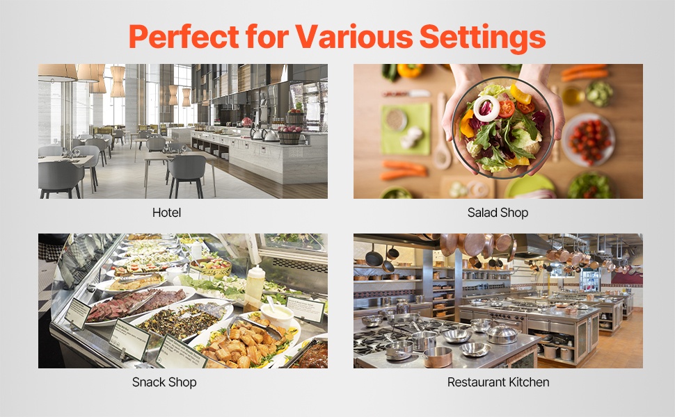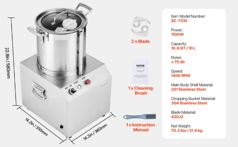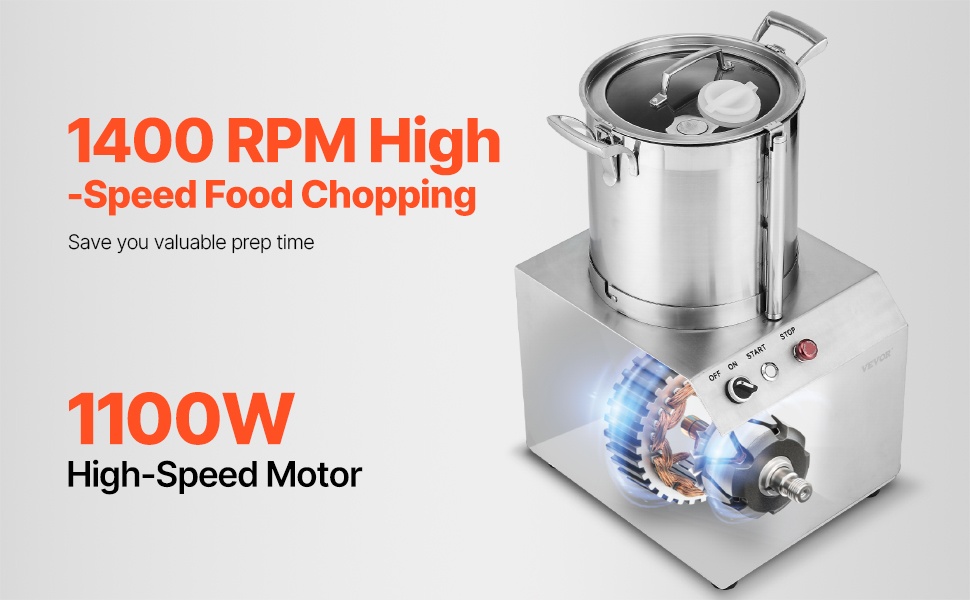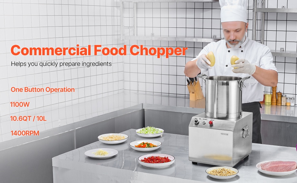 Tehokas 10L monitoimikeitin ja vihannesleikkuri helpottaa suurten määrien esikäsittelyä ammattikeittiöissä ja kotona. 1100W moottori, terävät S-muotoiset terät ja tilava 10.6 QT / 10 L kulho pilkkovat nopeasti vihannekset, hedelmät, viljat ja pähkinät yhdellä painalluksella.