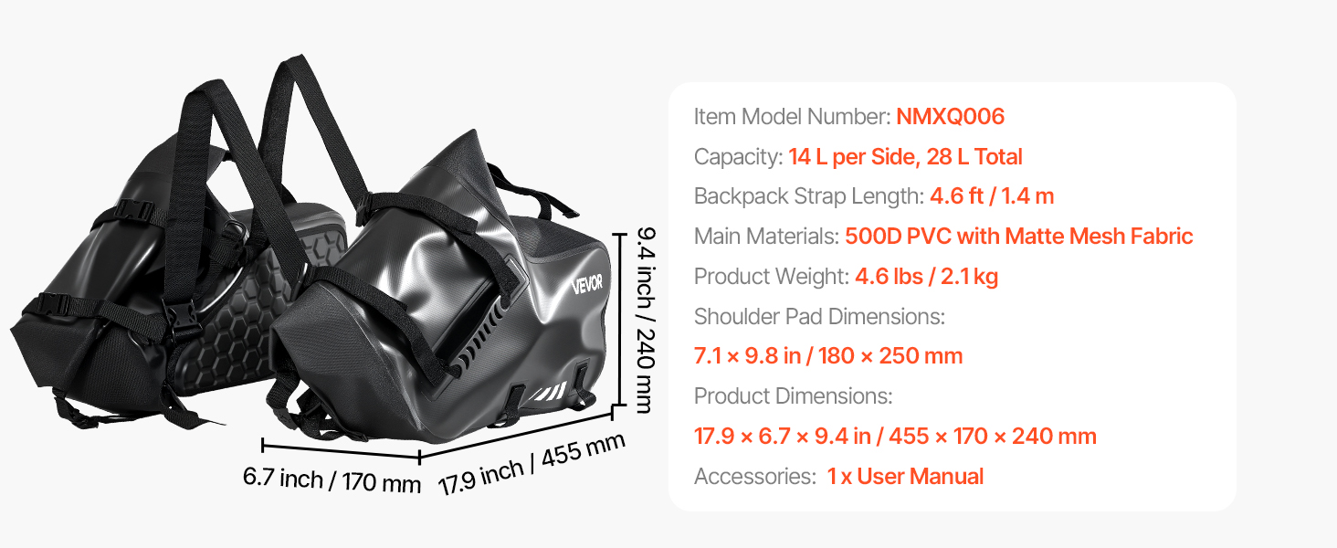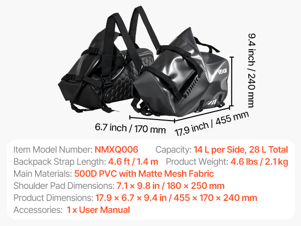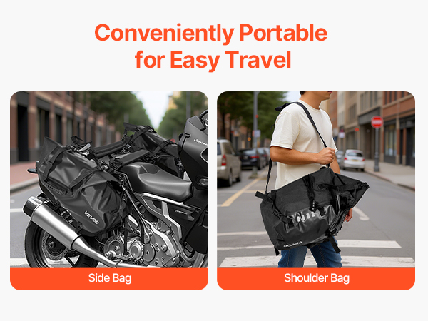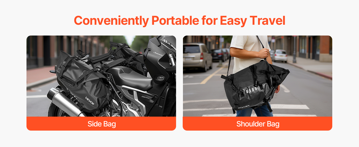 Suurikapasiteettinen sivulaukku helpottaa erikokoisten tavaroiden kuljetusta – vaatteista ja työkaluista ruokaan ja päivittäisiin tarvikkeisiin. Molemmat puolet tarjoavat 14 L tilaa, yhteensä 28 L.