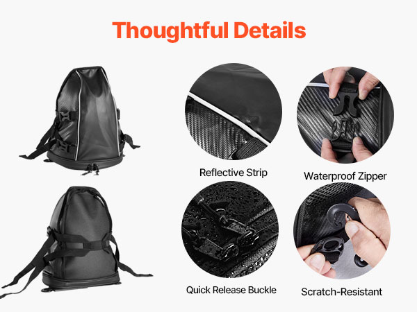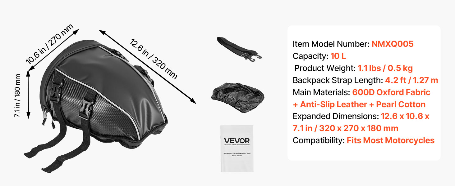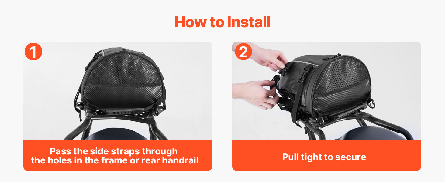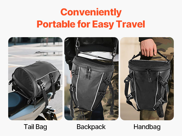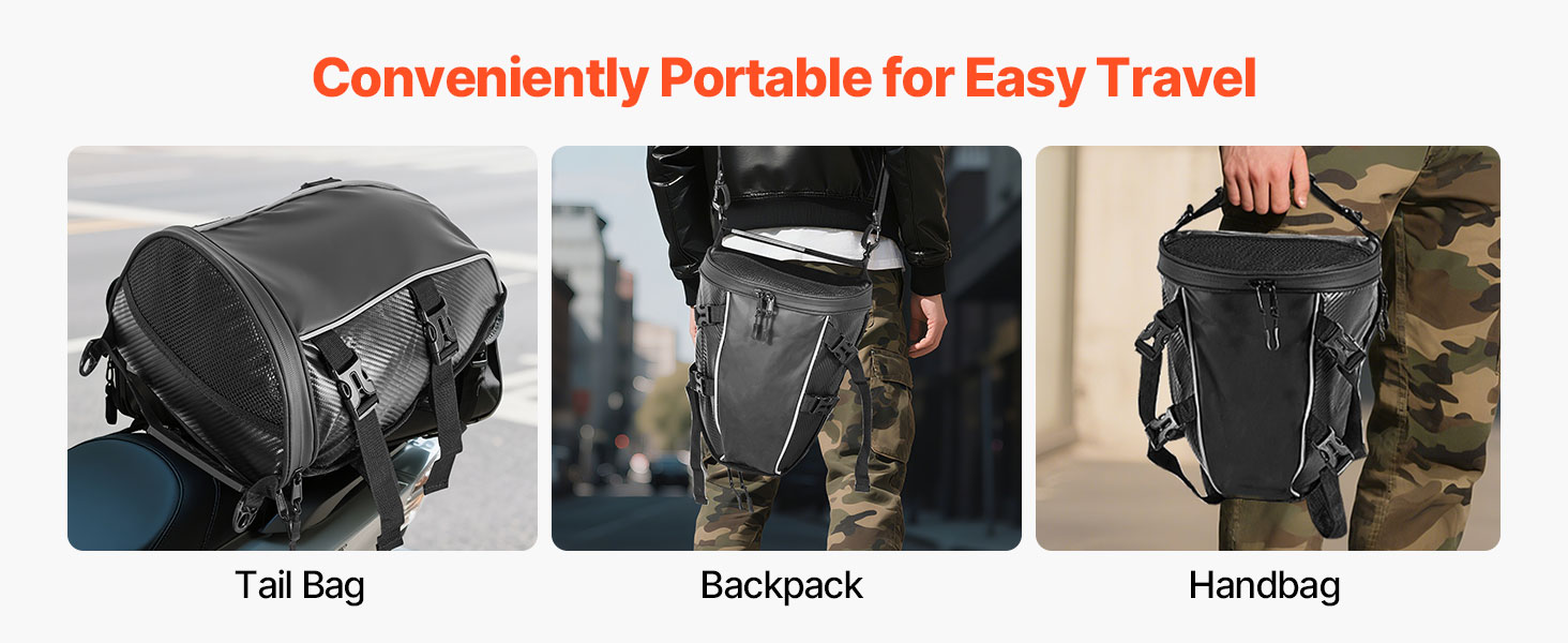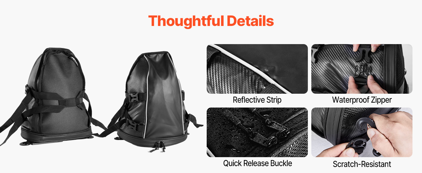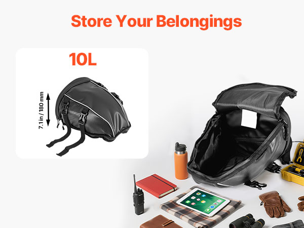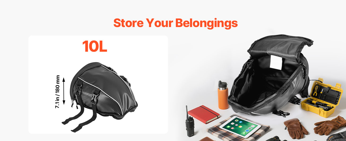 Tilava rakenne vetoketjutaskuineen helpottaa arkisten tavaroiden, kuten sadeasun, vesipullon, käsineiden, työkalujen tai asiakirjojen pakkaamista. Tavarat pysyvät hyvässä järjestyksessä moottoripyörän takaistuimen laukussa.