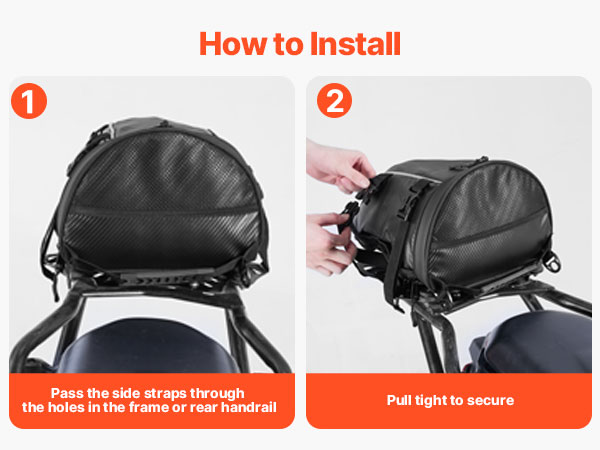 Tämä moottoripyörän takalaukku sopii useimpiin moottoripyörämalleihin. Se on suunniteltu asennettavaksi perään ja tarjoaa kätevän lisäsäilytystilan arjen ajoihin ja pidemmille matkoille.