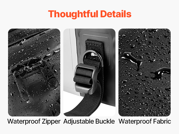 - Vedenpitävä vetoketju ja kulutusta kestävä kangas