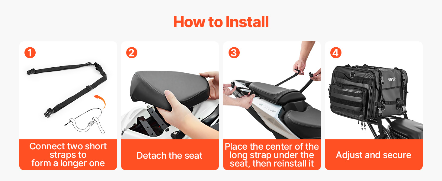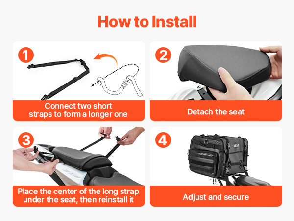 - Sopii useimpiin moottoripyörien takapenkkeihin ja -telineisiin