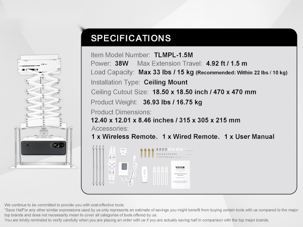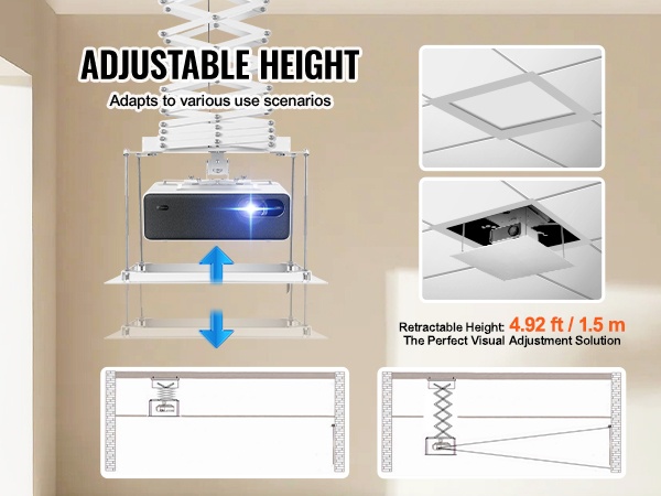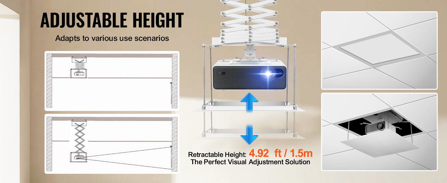 – Säädettävä nostokorkeus jopa 4.92 ft / 1.5 m erilaisiin tiloihin