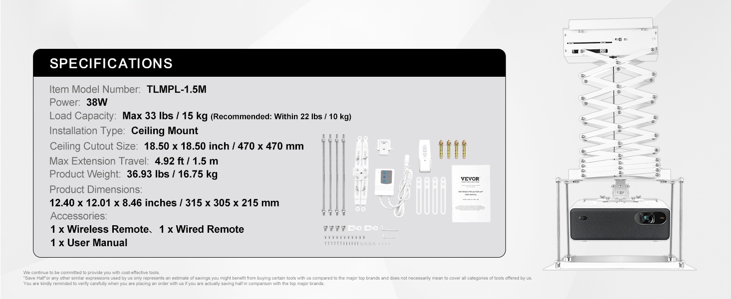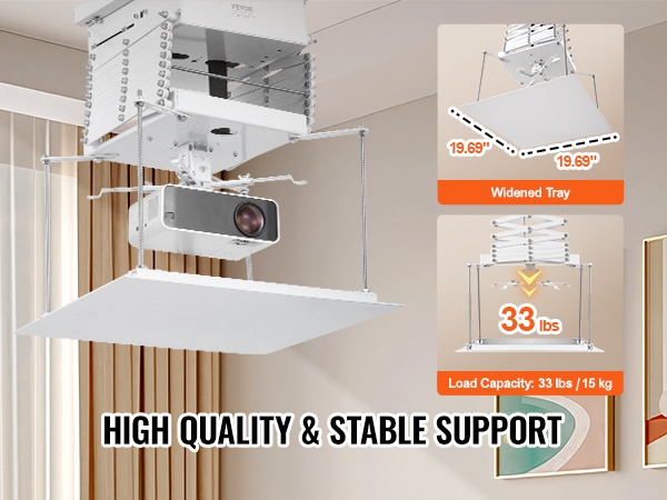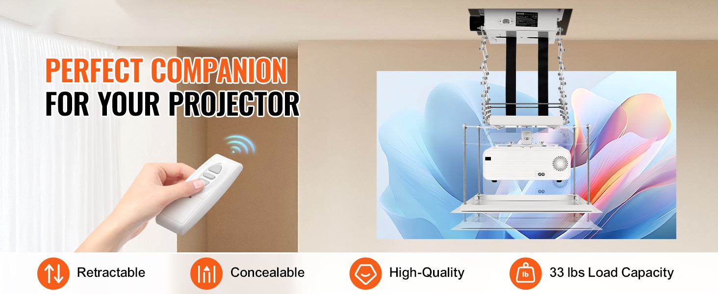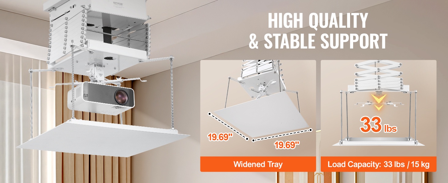 – Laaja yhteensopivuus eri projektorimallien kanssa (kantavuus max 33 lbs / 15 kg, suositus enintään 22 lbs / 10 kg)