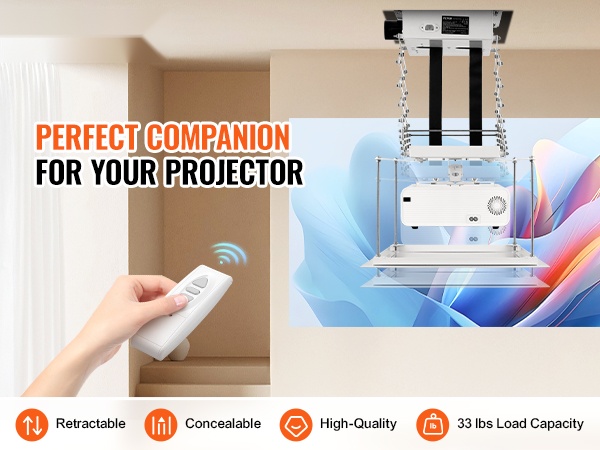 Tämä moottoroitu projektorinostin voidaan asentaa huomaamattomasti alaslaskettuun tai alaslaskettuun kattoon. Piilotettu rakenne ja integroitu kaapelinhallinta luovat siistin ja yhtenäisen ilmeen kotiin, toimistoon, studion tai esiintymislavan käyttöön.