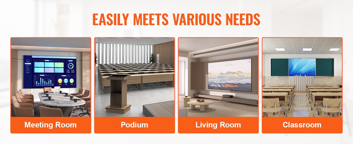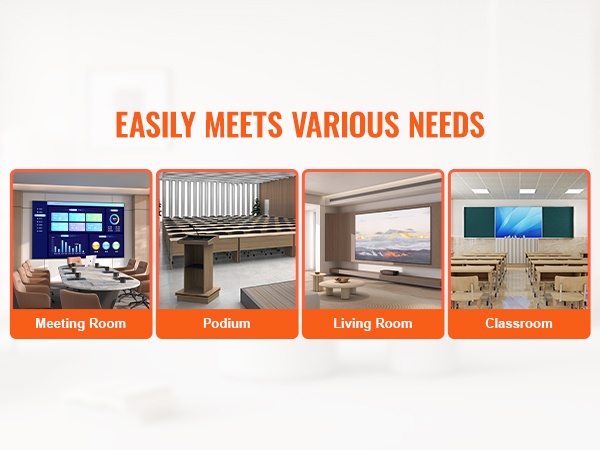Maksimiulottuma 4.92 ft / 1.5 m mahdollistaa projektorin tarkat korkeussäädöt niin pienissä kokoushuoneissa kuin suuremmissa saleissa. Näin kuva saadaan helposti oikeaan kohtaan valkokankaalla tai seinällä.