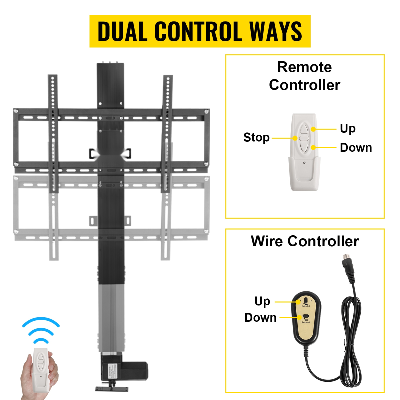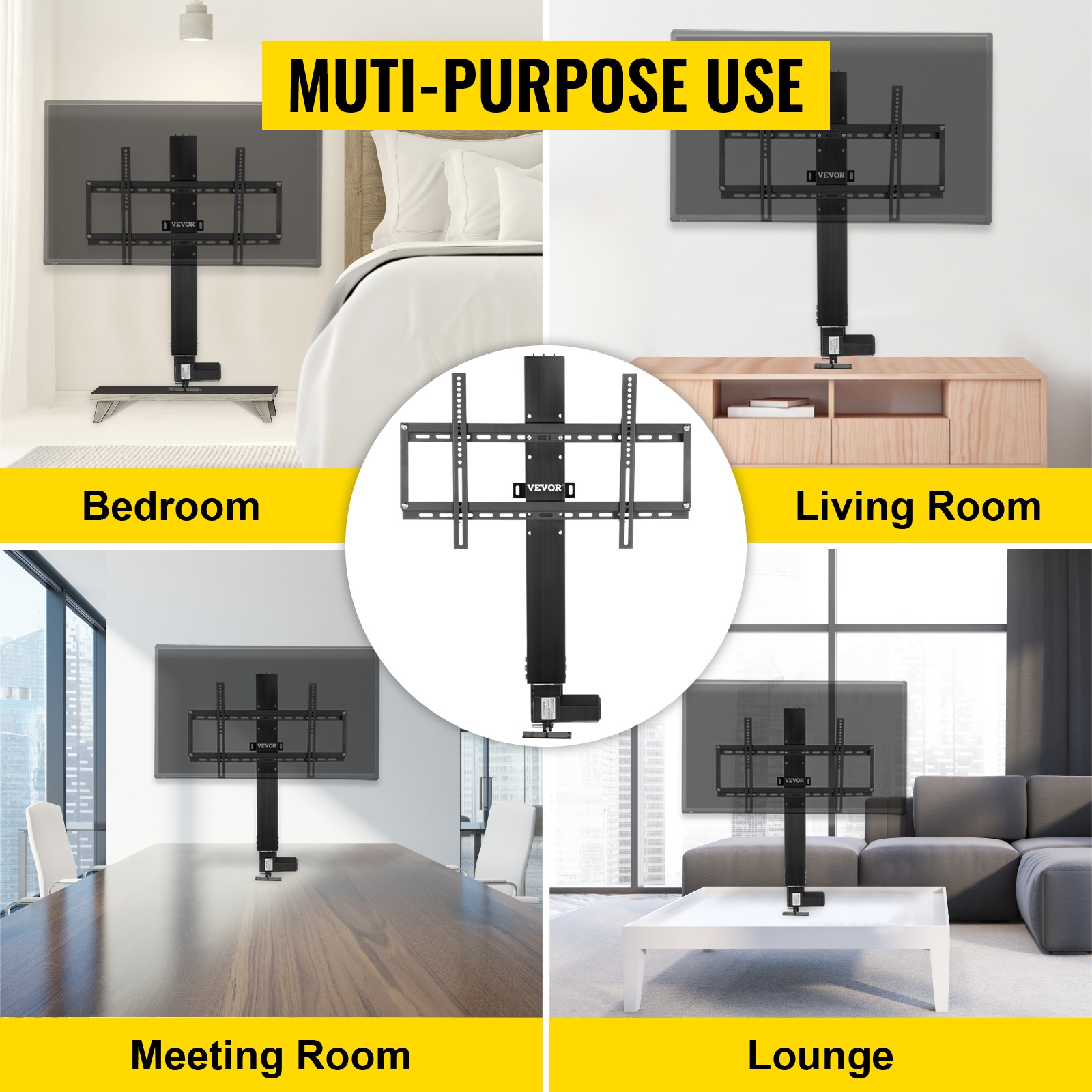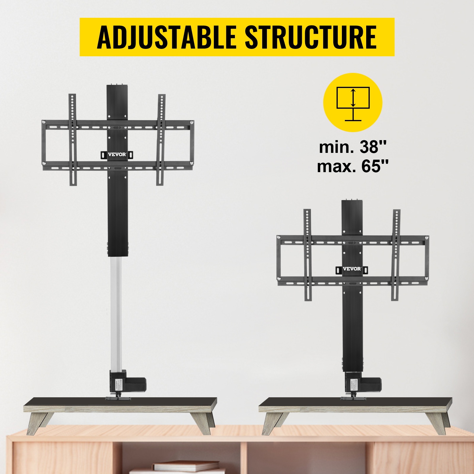 Moottoroitu TV-nostoteline mahdollistaa television nostamisen ja laskemisen sähköisesti. Korkeutta voi säätää kätevästi langattomalla kaukosäätimellä tai johdollisella käsiohjaimella. Teline voidaan kiinnittää seinään tai lattiaan, ja se sopii useimpiin televisiomalleihin.