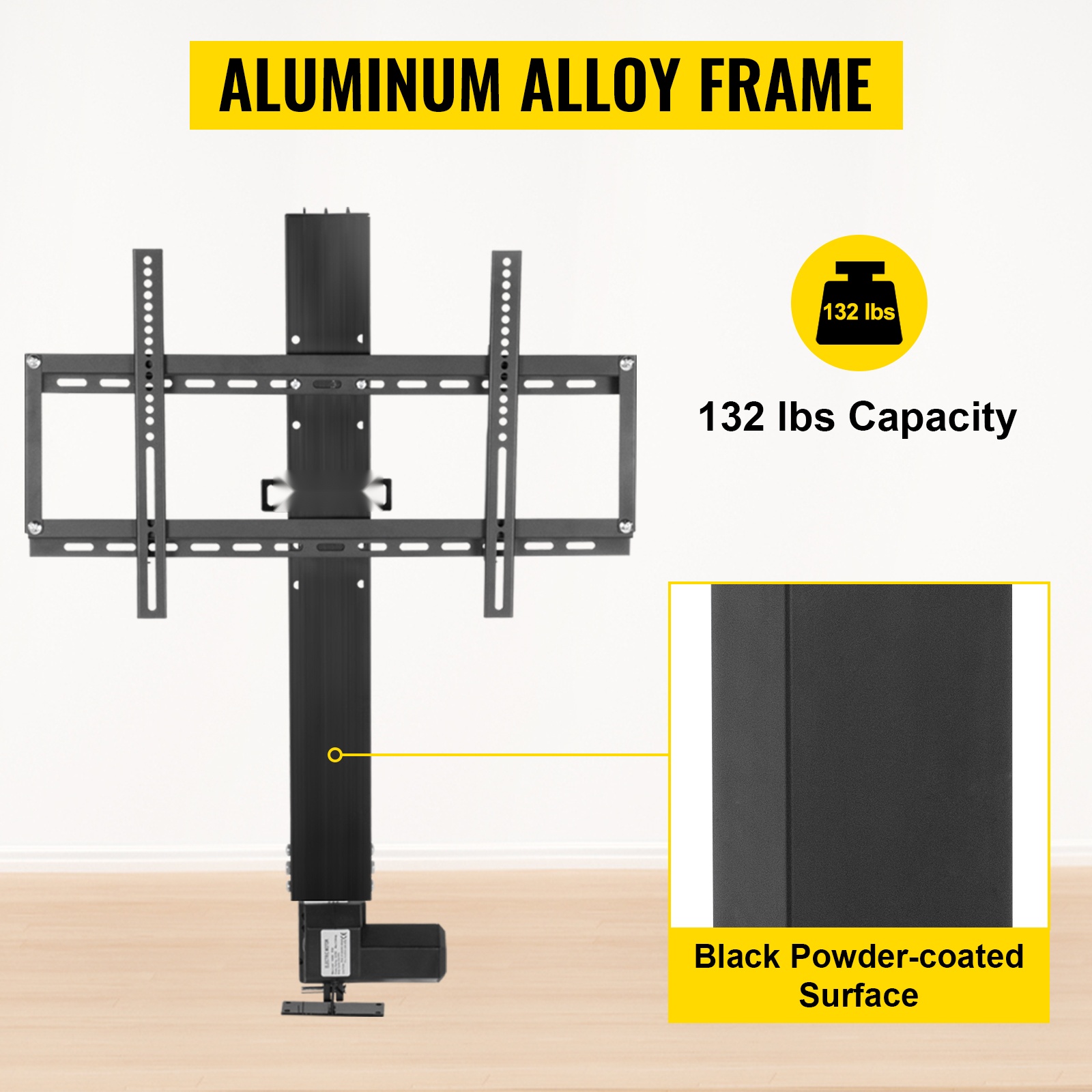 Paksut alumiiniseoslevyt ja jauhemaalaus tekevät rungosta lujan, korroosionkestävän ja pitkäikäisen, jotta TV pysyy tukevasti paikallaan.
