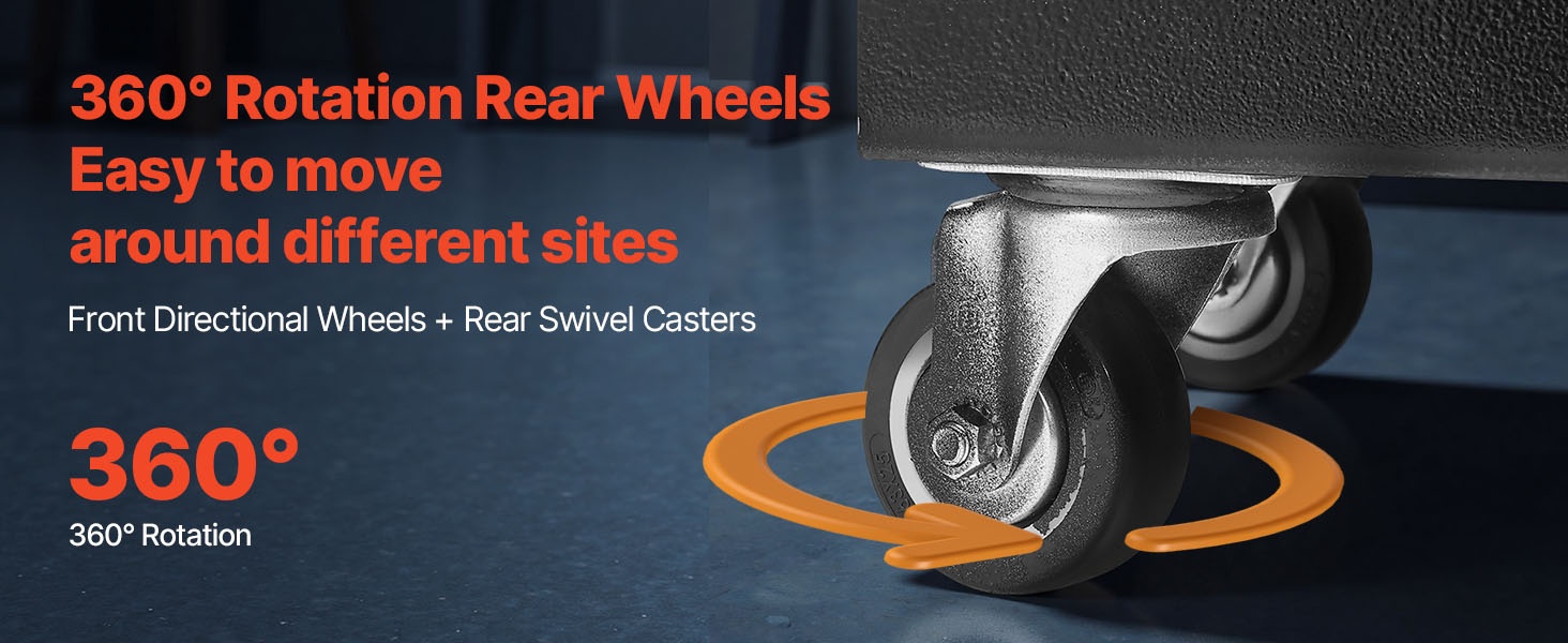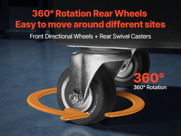 Edessä olevat kiinteät pyörät helpottavat suunnan hallintaa ja takana olevat 360° kääntyvät pyörät mahdollistavat sujuvan ohjattavuuden. Murskainta on helppo siirtää ja sijoittaa uudelleen työtilassa vähäisellä vaivalla.