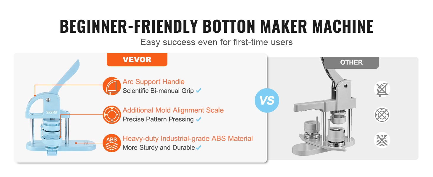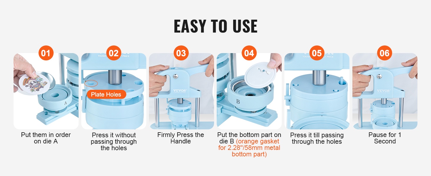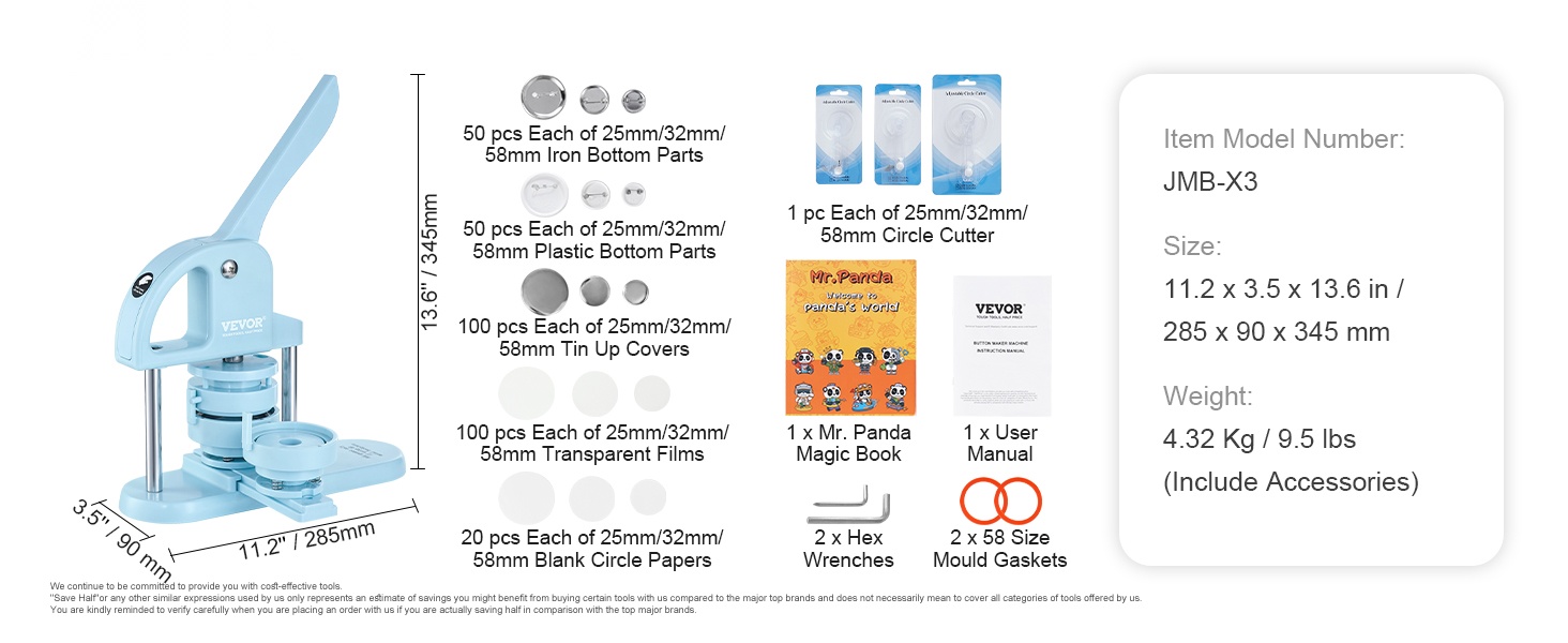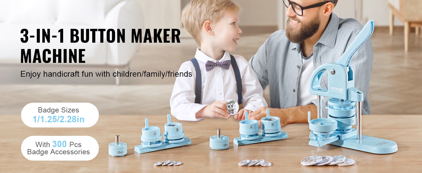 Tämä käyttövalmis nappikone tekee rintanappien ja pienten merkkien tekemisestä nopeaa ja vaivatonta. Laite ei vaadi asennusta, vaan se on käyttövalmis suoraan pakkauksesta. Voit käyttää 127–157 g kuparipaperia merkkien valmistukseen ja nauttia turvallisesta ja mukavasta DIY-tekemisestä yhdessä lasten tai ystävien kanssa.