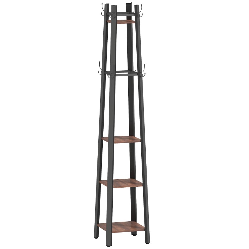 Naulakko 4 tasoa ja 8 koukkua, vapaasti seisova eteiseen, metalli ja lastulevy, ruskea, 34,8 x 34,8 x 179 cm
