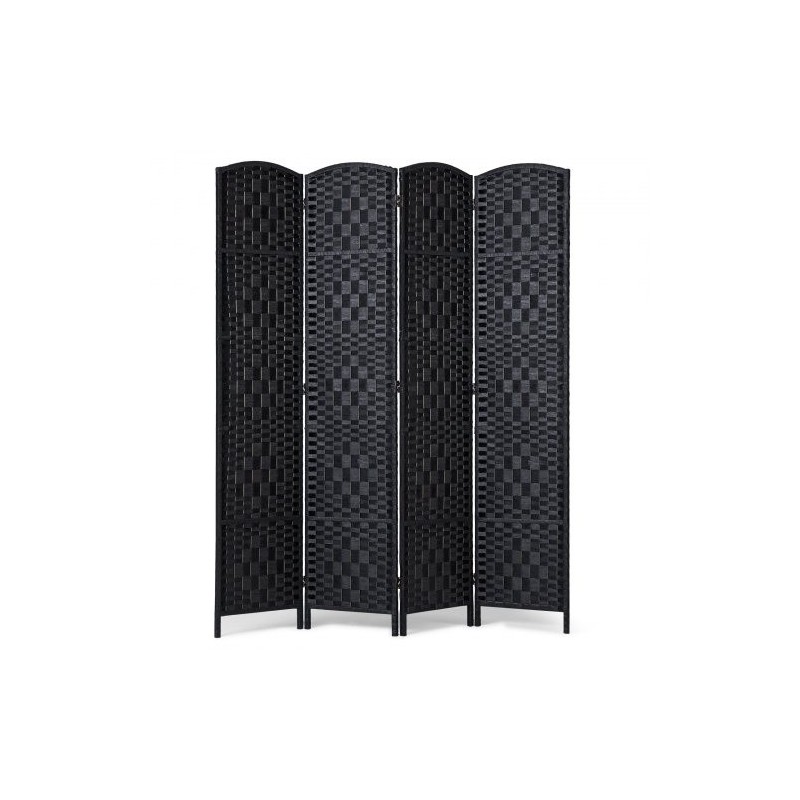 Neliosainen taitettava tilanjakaja keisaripuusta ja paperirottingista musta