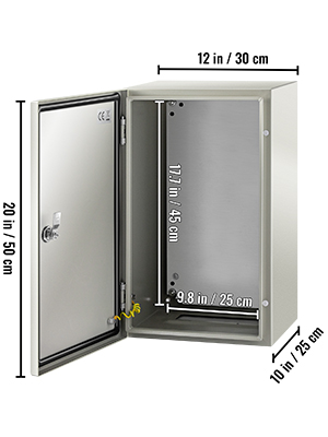 NEMA teräksinen sähkökotelo SPT 50 x 30 x 25 cm IP66 NEMA 4X lukittava jakorasia ulko- ja sisäkäyttöön