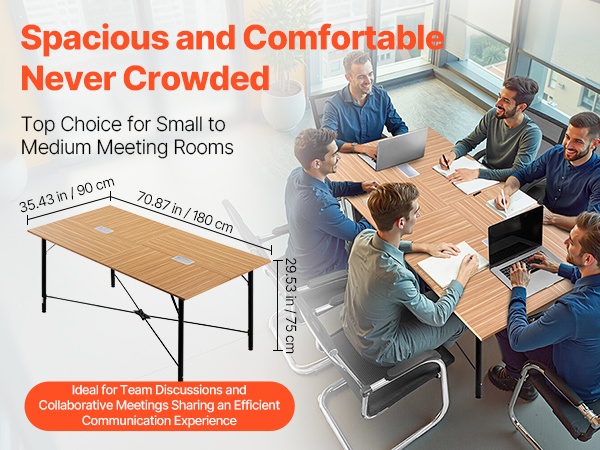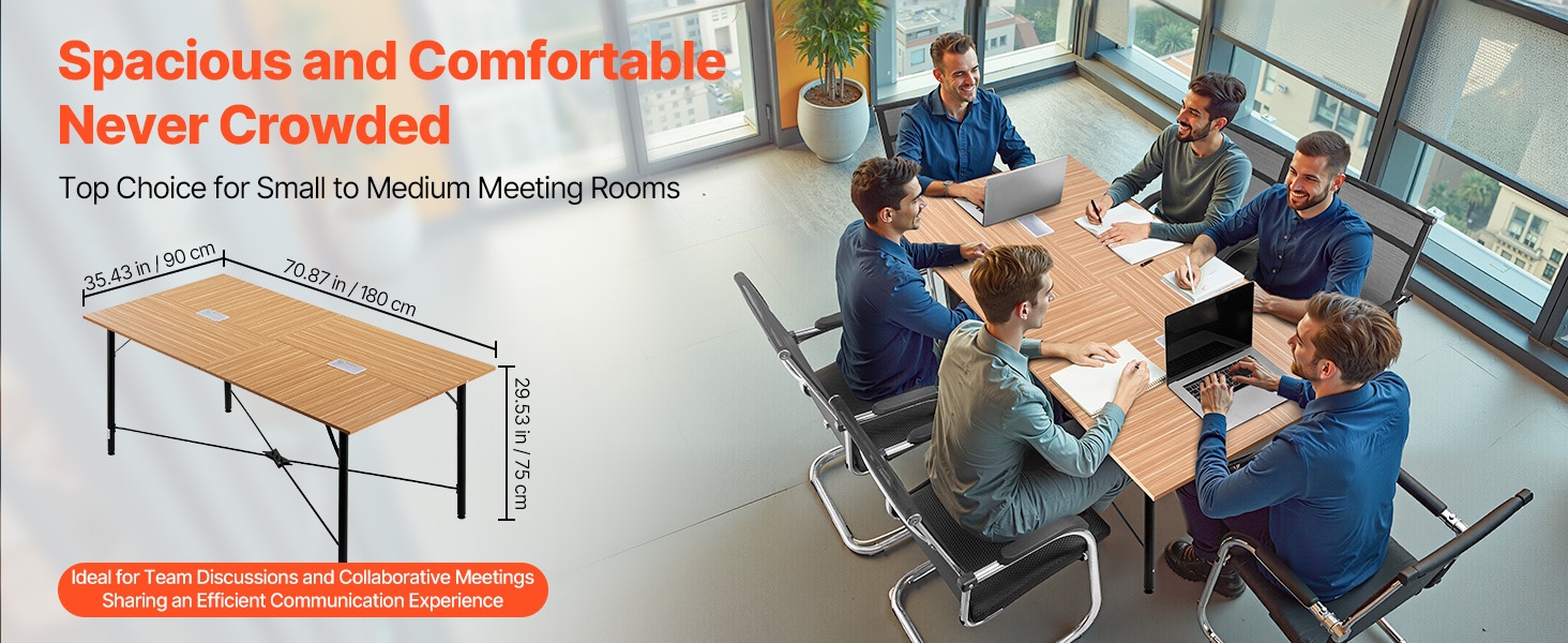 Vakio 6 ft pöytätaso tarjoaa mukavat istumapaikat noin 6–8 henkilölle. Pöytä sopii hyvin tiimipalavereihin, koulutuksiin, työpajoihin ja videokokouksiin, kun tarvitaan selkeää ja yhtenäistä työskentelytilaa.