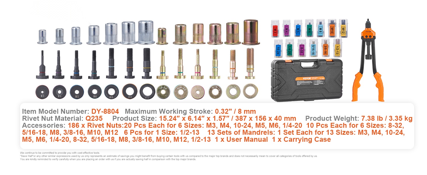 - Pituus: 40.6 cm (16-tuumainen) niittimutterityökalu