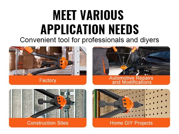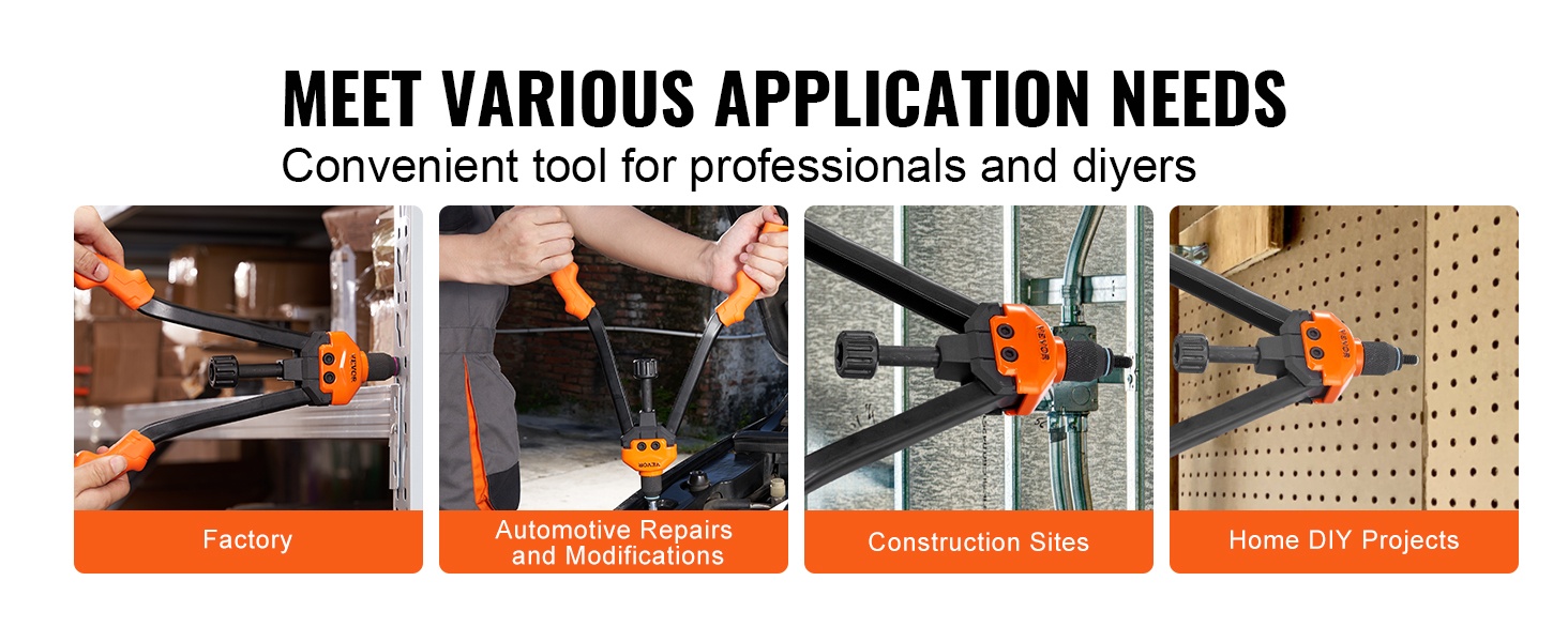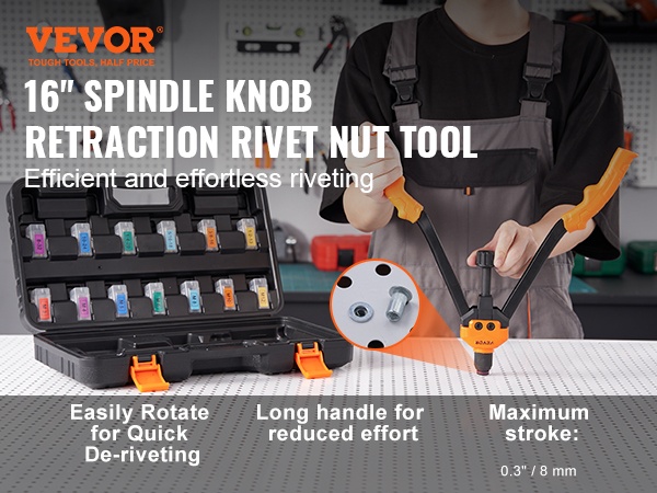 16-tuumainen puolautomaattinen niittimutterityökalu helpottaa niittien vapauttamista: riittää, että kierrätät säädintä, jolloin niitti irtoaa automaattisesti. Pitkä kahvarakenne antaa hyvän vipuvoiman, joten työ sujuu kevyemmin ja nopeammin – vähemmän rasitusta, enemmän tuloksia.