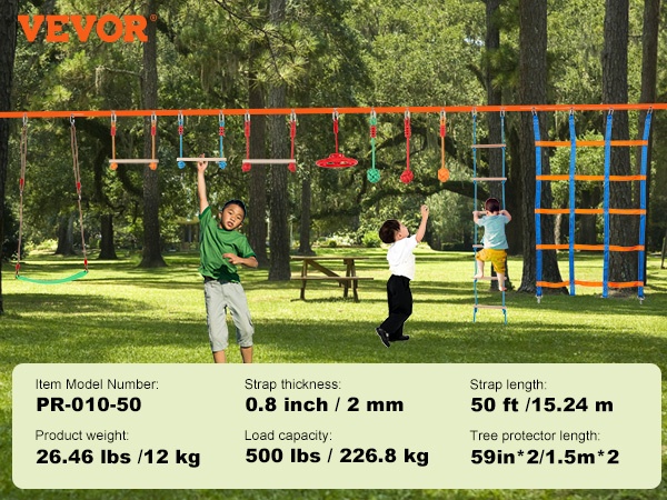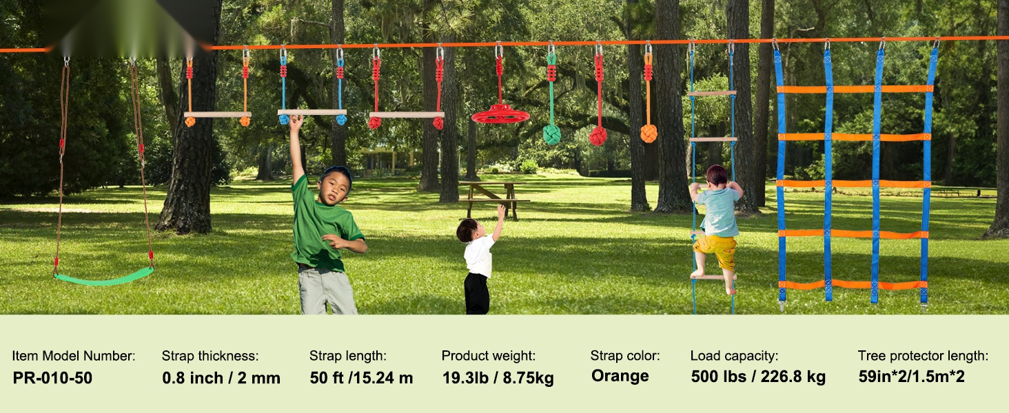 - Säänkestävät slacklinet: 2 x 56 ft / 17 m