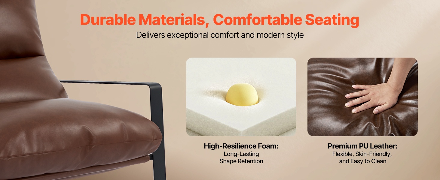 Nojatuoli PU-nahkaverhoiltu vaahtotäyte tasarunkoinen ruskea 80x75x82 cm