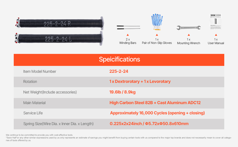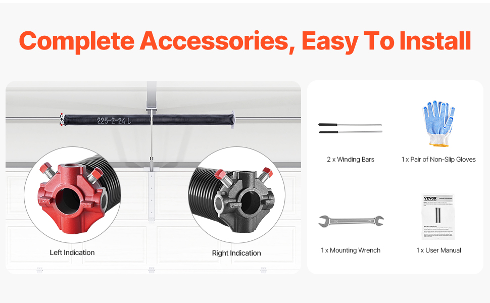 Pakkaukseen sisältyvät liukumattomat kiristyssauvat, suojakäsineet ja asennusavain helpottavat käyttöönottoa. Huomioi kuitenkin, että jousien asennus ja säätö voi olla vaarallista. Asennus ja säätö on suositeltavaa teettää ammattilaisella sekä noudattaa huolellisesti mukana tulevia ohjeita.