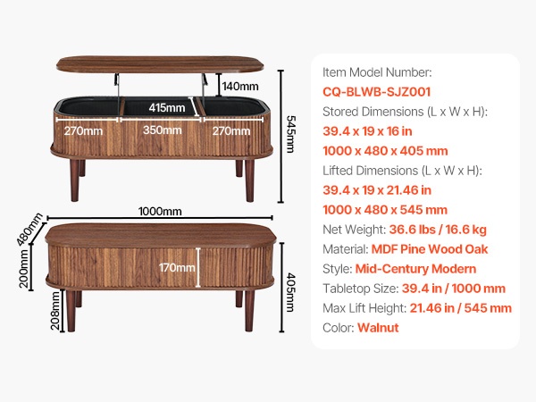 Monikäyttöinen nostokannellinen sohvapöytä