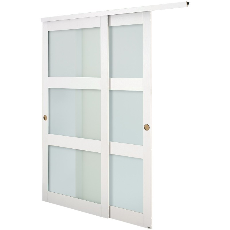 Ohitusliukuovet kaapistoihin 2 paneelia massiivipuu ja MDF 1829x2032mm valkoinen himmeä lasi