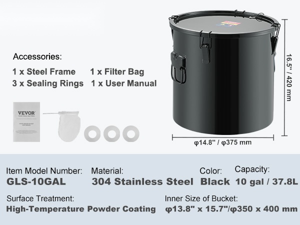 - Elintarvikekäyttöön sopiva sisäpinnoite auttaa pitämään öljyn hygieenisenä suodattamista ja väliaikaista säilytystä varten.