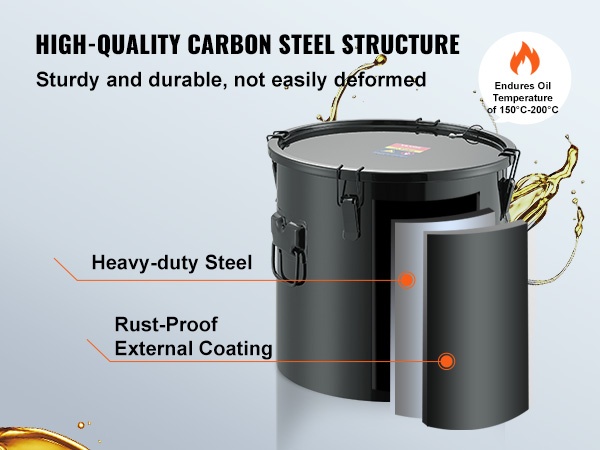 - Kapasiteetti: 8 gal / 30 L – soveltuu suurille öljymäärille ennen hävitystä tai jatkokäsittelyä.