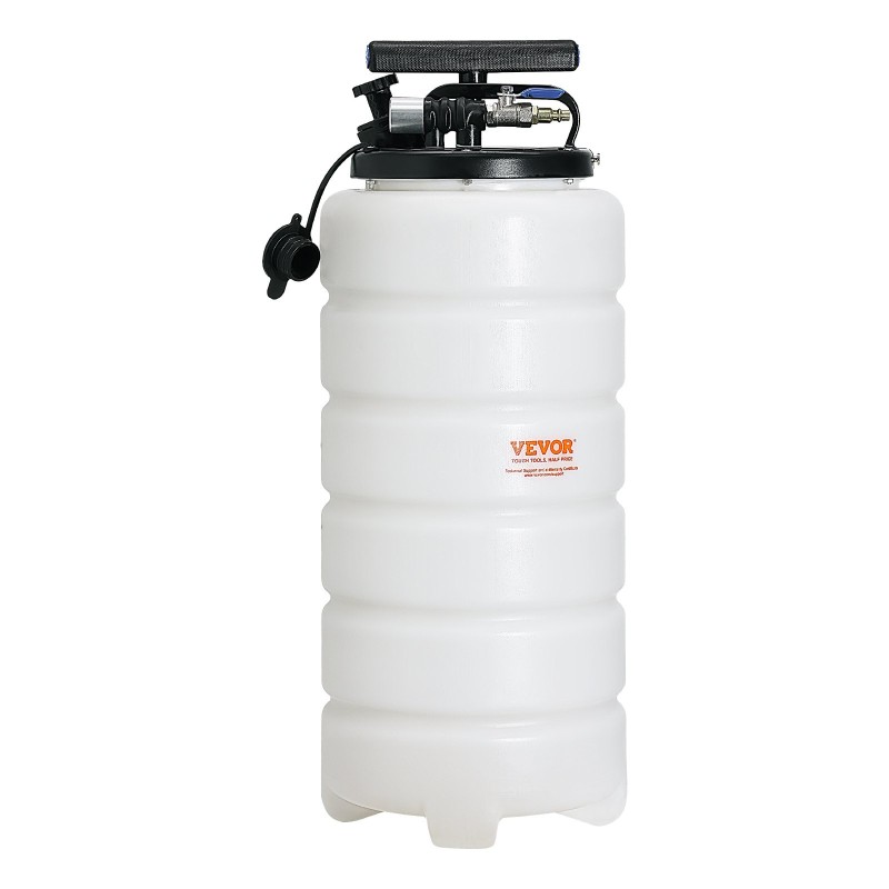 4 gallonan / 15 L nestettä vetävä manuaalinen ja pneumaattinen öljynpoistaja ajoneuvojen nesteiden tyhjennykseen. Laitteella voi imeä ja poistaa moottoriöljyä, vaihteistoöljyä, ohjaustehostinnestettä ja jarrunestettä siististi ilman, että autoa tarvitsee nostaa.