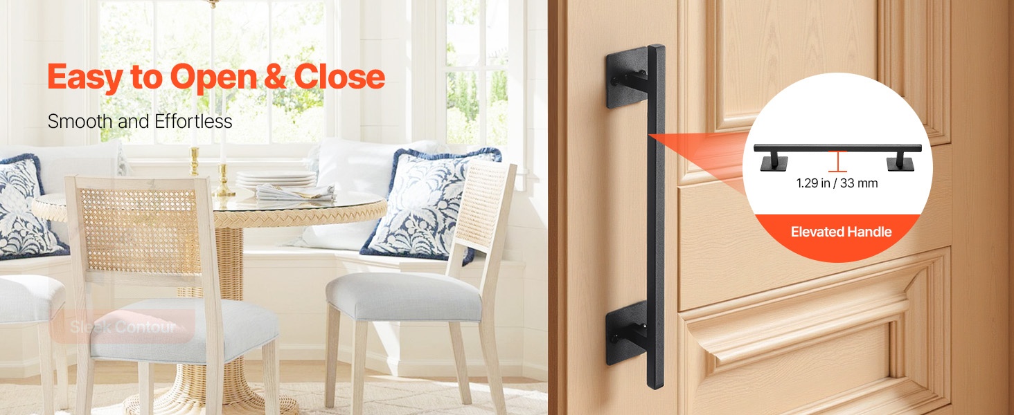 Kestävästä hiiliteräksestä valmistettu, ruosteenkestävällä pinnoitteella varustettu portinkahva soveltuu sekä sisä- että ulkokäyttöön. Se tarjoaa miellyttävän otteen ja sulavan käytön erilaisissa ovissa ja porteissa, kuten aitaporteissa, ladossa, varastossa ja autotallissa.