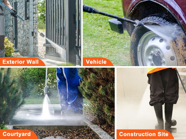 Ulkoseinät, jalkakäytävät, ajoneuvot ja työmaat – pumppu auttaa suorittamaan puhdistustyöt tehokkaasti ja tasaisesti eri käyttökohteissa.