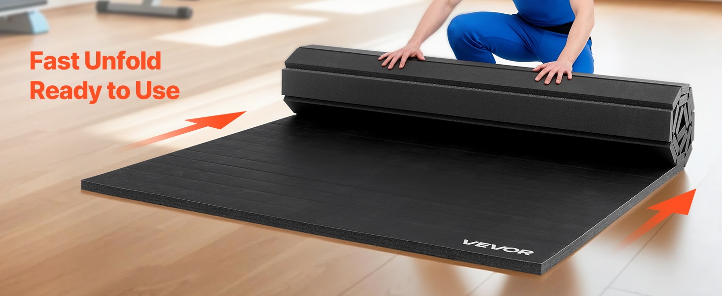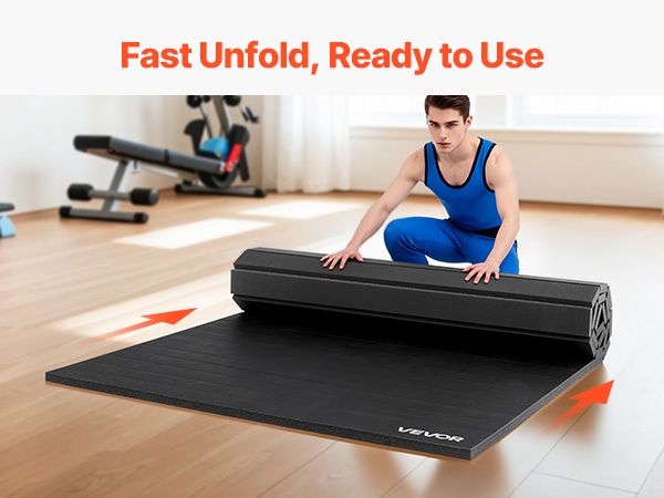 Matto rullautuu nopeasti ja on heti käyttövalmis: vedä matto auki, levitä lattialle ja aloita harjoittelu. Rullattava rakenne tekee siitä kätevän vaihtoehdon tiloihin, joissa lattia pitää saada välillä muuhun käyttöön.